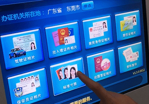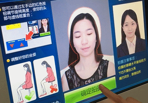 自助照相的操作步驟簡單明了,申請(qǐng)人只需根據(jù)提示點(diǎn)擊屏幕上的按鈕依次選擇業(yè)務(wù)類型、讀取本人身份證、拍攝符合制證標(biāo)準(zhǔn)的照片即可。拍好后,系統(tǒng)自動(dòng)上傳至照片質(zhì)檢平臺(tái),并打印出申請(qǐng)表,整個(gè)流程只需1分鐘左右。
